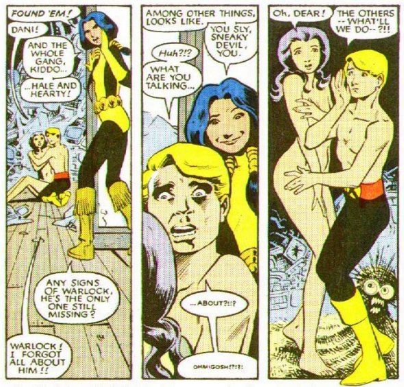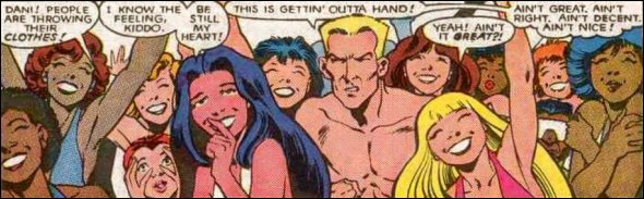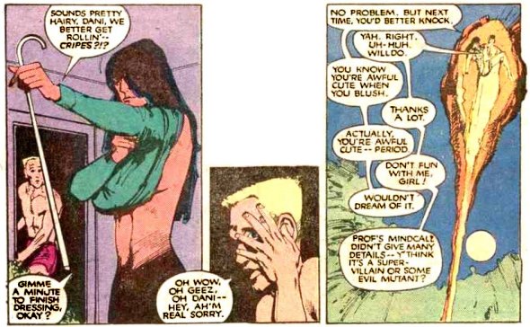 Mmm, boys. Note that Rahne isn't actually hiding her eyes, either.